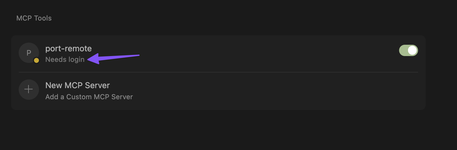 To connect the Port MCP server to AI agents in CI/CD environments or other automated contexts where interactive authentication isn't possible, see our token-based authentication.