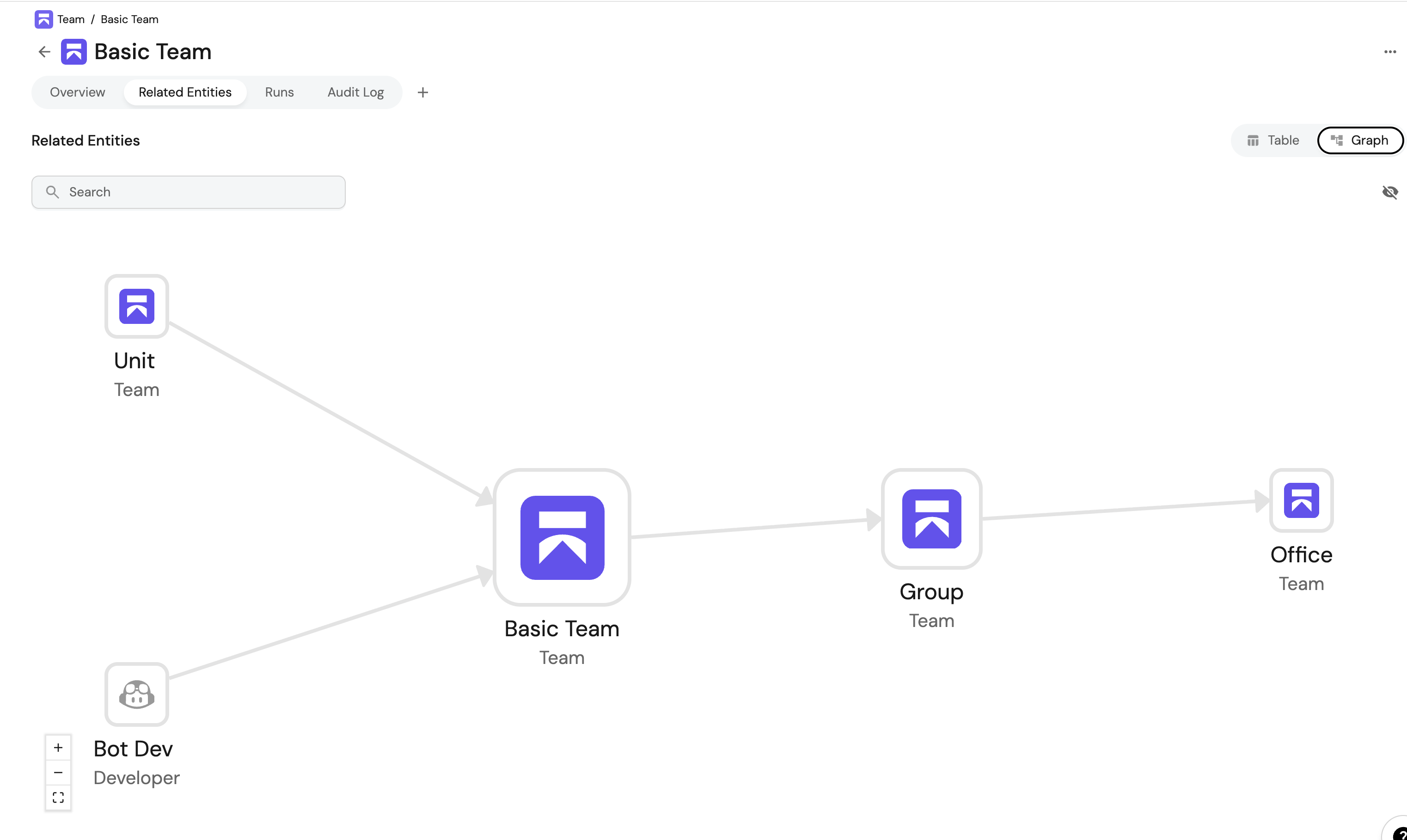 In this example, the system will traverse 2 fixed hops (Unit → Basic Team → Group) and then continue with up to 3 additional hops using the team_self_relation, starting from where the fixed hops left off. This could represent a complete organizational hierarchy from Unit all the way up to higher-level organizational structures.