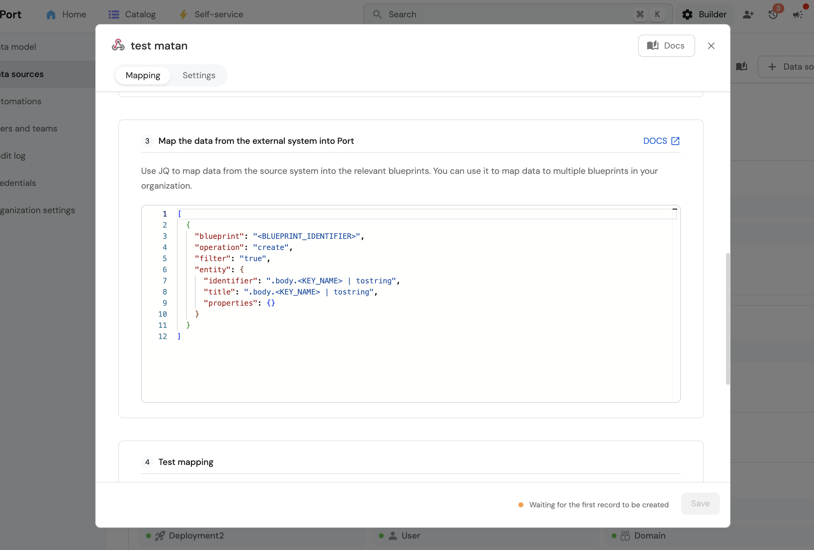 4. Copy and store the generated webhook URL (should be in a format like https://ingest.getport.io/abc123).