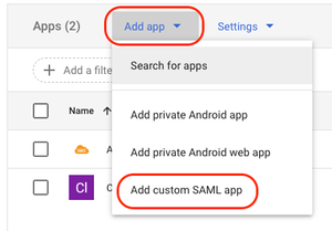 Add appfollowed byAdd custom SAML app: